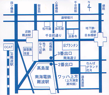 <電車をご利用の場合> ■地下鉄「なんば」駅下車徒歩3分 ■南海「難波」駅下車徒歩3分 ■JR「JR難波」鋭気下車徒歩10分